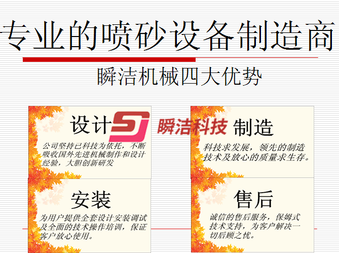 4、除下列的產(chǎn)品外,另可根據(jù)客戶需求量身訂制各類自動(dòng)化噴砂設(shè)備及噴砂生產(chǎn)線