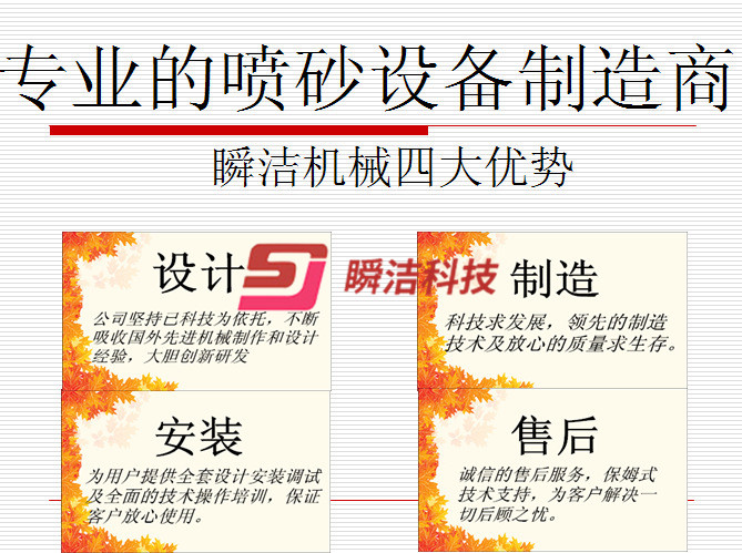 2.槍架采用搖擺式噴砂,可使工件噴砂更均勻,槍架速度依據(jù)實(shí)際需求做調(diào)整.
