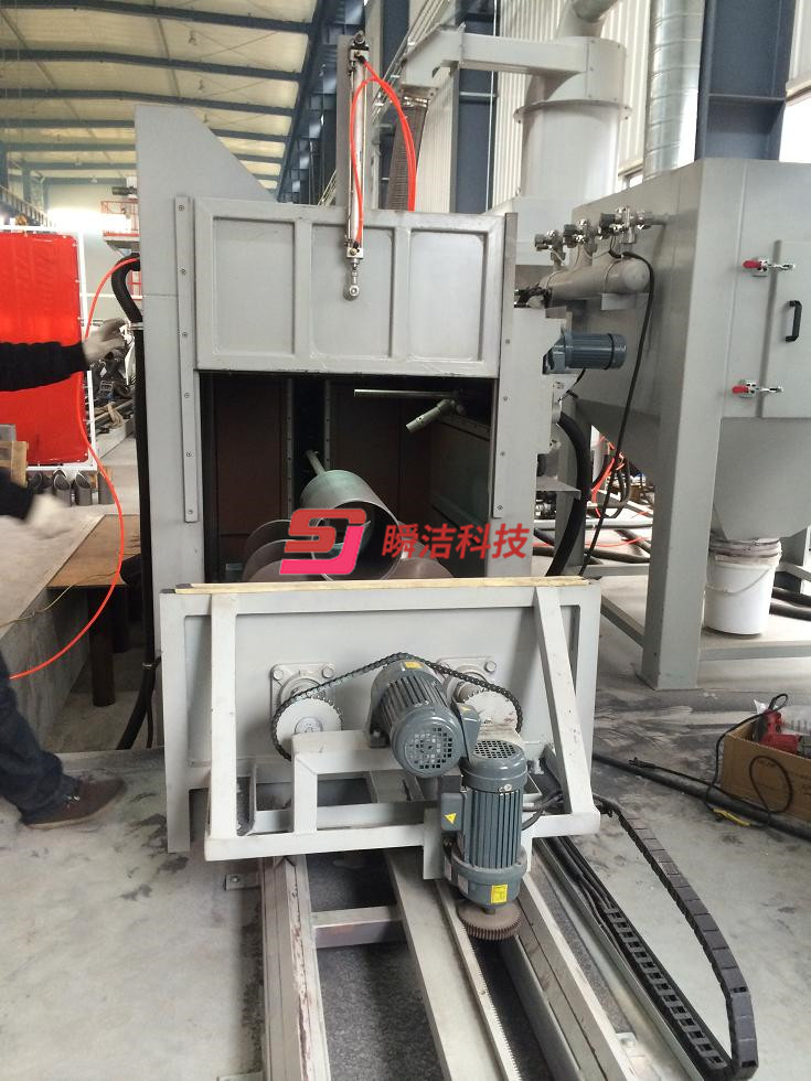 2..鋼管內外壁噴砂清理機適用于大、中、小型鋼管、鋼瓶的表面處理和強化、工件自動旋轉、自動行走 , 工件的運轉速度可根據(jù)工件的要求進行及時調整, 可設計成單管、雙管、3管、4管、變異后可清理大型管件、油罐,化工儲運罐鐵路車輛等.